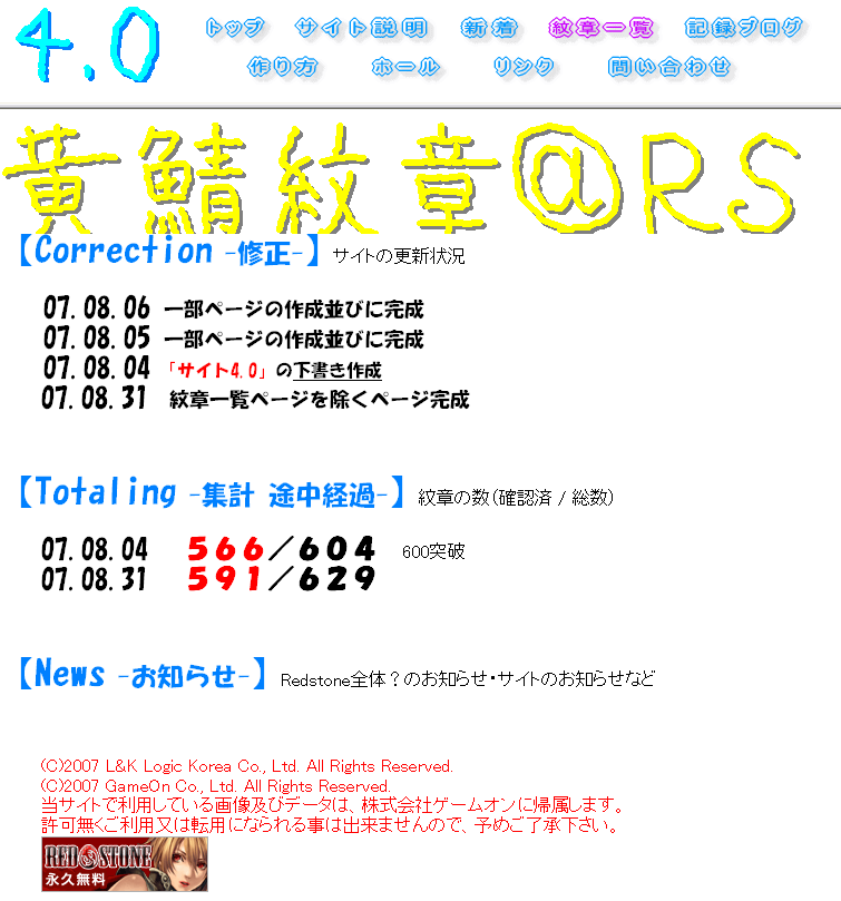 現在、紋章一覧ページを仕上げれば完成とほとんど完成に近いところまで